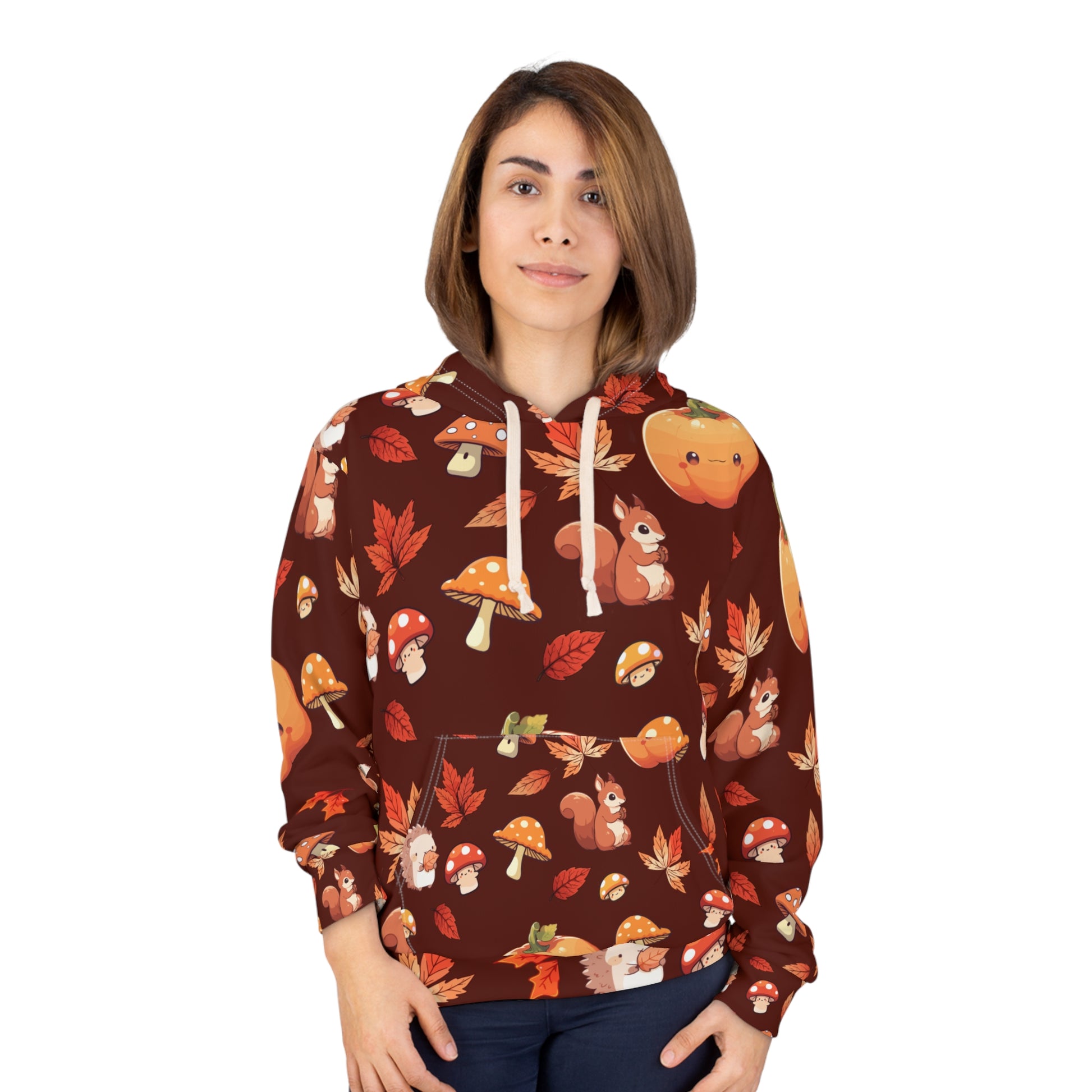 Embrace fall with this fun unisex pullover! Featuring cute woodland creatures and bright autumn leaves, it’s perfect for cozy days and festive outings. Whether relaxing or celebrating Halloween and Thanksgiving, this hoodie adds playful charm and warmth to your wardrobe. Great for nature lovers and anyone who loves fall vibes!