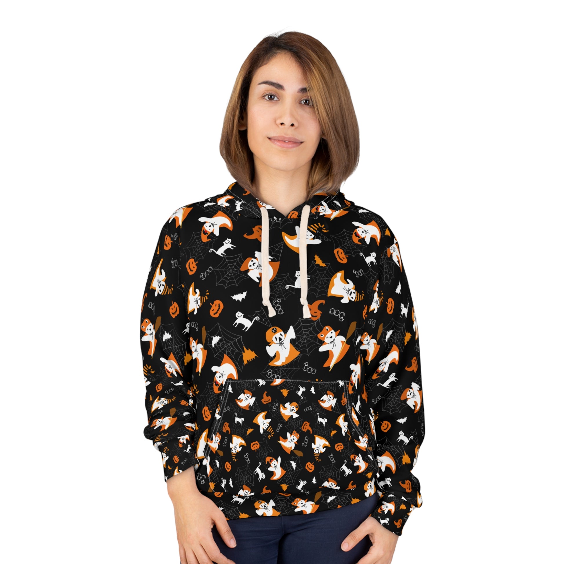 This unisex pullover hoodie keeps you warm with a fun Halloween ghost print. It’s perfect for cozy days, festive outings, or celebrating fall in style. Comfortable and playful, it’s a standout addition to your seasonal wardrobe.